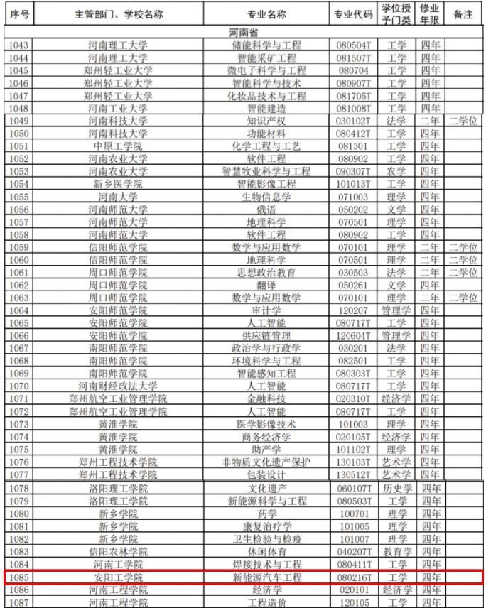 本次获批新增的新能源汽车工程专业面向国家发展战略和中原经济区发展需求设立,教学条件完善,学科基础较强。